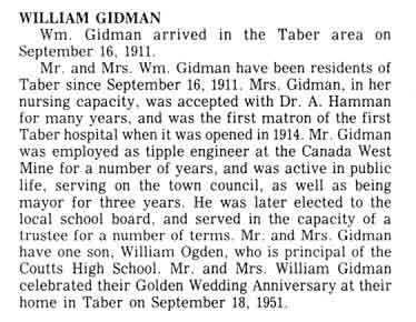 Sylvia’s service in Canada, including nearly twenty years in Taber earned her the King George V medal for long service. An obituary says “J.H.(Pilot) Gidman is the only son and Mrs T.C. Williams the only daughter of the deceased”.